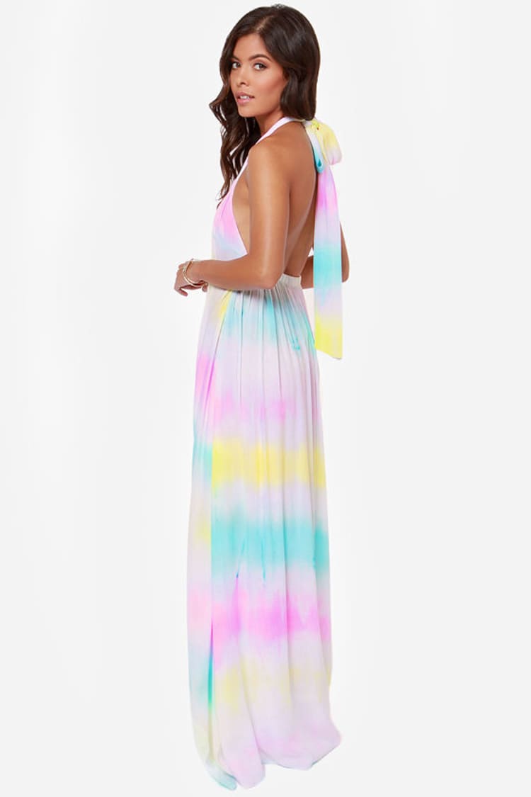 Pretty Tie Dye Dress Maxi Dress Halter Dress 65 00 Lulus